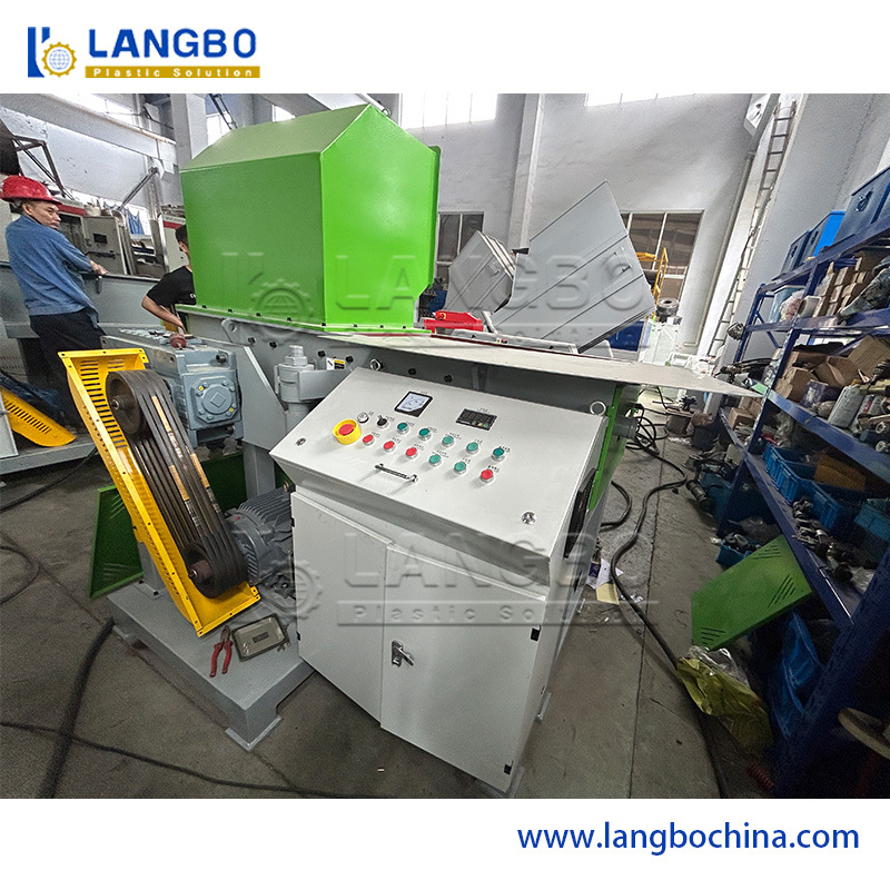 Zanim linia do wytłaczania rur HDPE zacznie płynnie pracować, aby wytłaczać rury, pracownicy muszą uruchomić maszynę i dostosować każdy szczegół podczas całego procesu. W tym procesie powstanie wiele zmarnowanych brył roztopionego PE. Są to duże bloki i wystarczająco twarde. Dlatego nie można ich przetwarzać za pomocą kruszarki, można je przetwarzać tylko za pomocą rozdrabniacza. Nasz rozdrabniacz jednowałowy ma dużą prędkość obrotową i noże o odpowiednim kształcie. Pracownicy wrzucają zmarnowane bryły roztopu przez otwór, a cząstki wypadają z wylotu.
