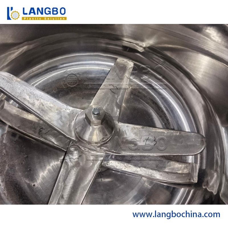 Plastic High Speed Heating Cooling WPC PVC Powder Resin Turbo Mixer Machine przeznaczona do rur PVC, profili drzwiowych okiennych, paneli sufitowych, kanałów i marmurowych arkuszy.Odpowiednie do tworzyw sztucznych, przemysłu kauczuku, chemicznego i spożywczego do mieszania proszku lub granulatów, barwienia i suszenia.